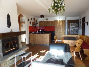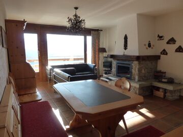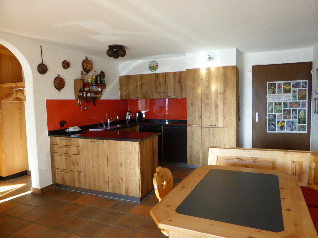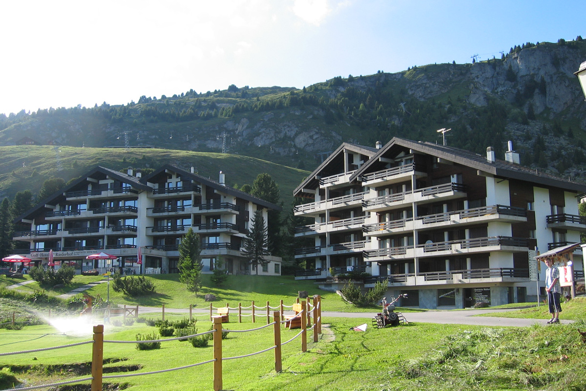 3.5-Zimmer-Ferienwohnung im Haus A des Riederhofs. Optionale Möglichkeit für Sauna, Dampfbad und Schwimmbad gegen Bezahlung. Grosser Skiraum.